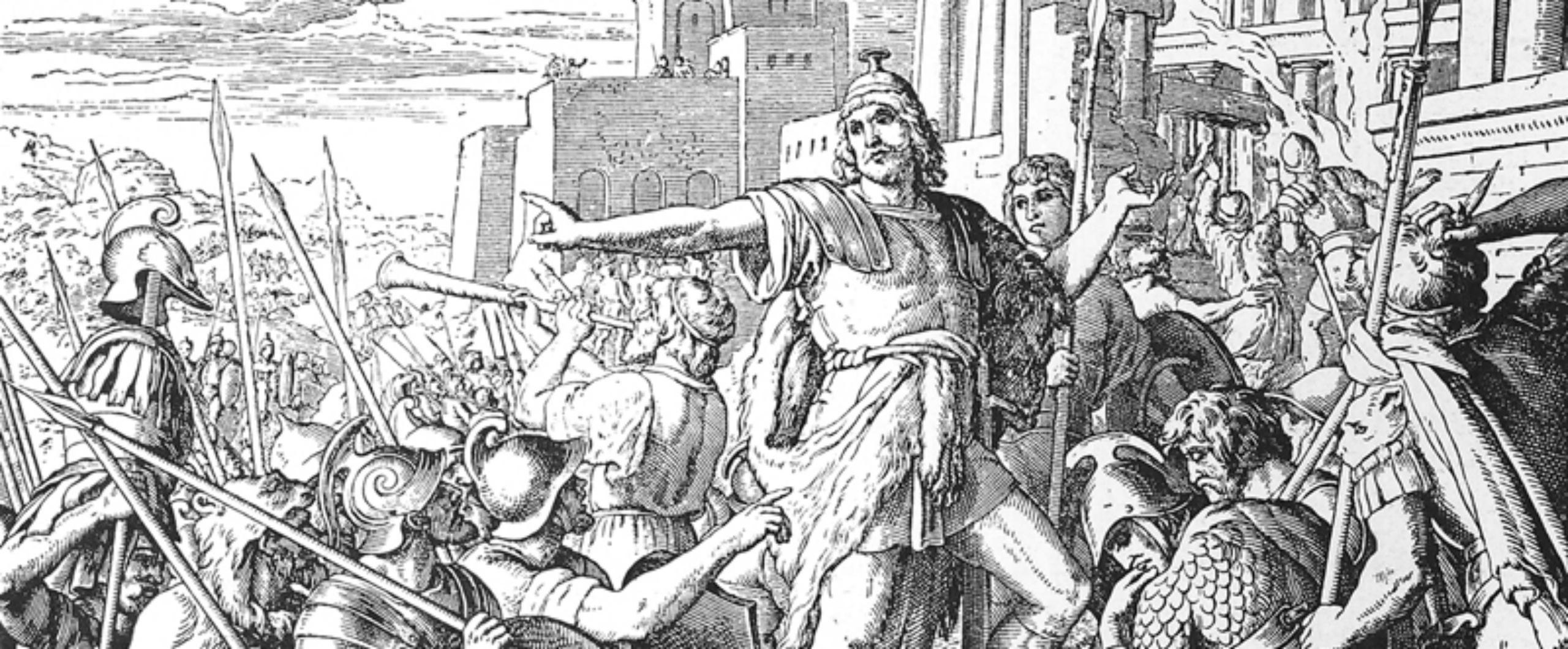 The warrior Yehudah HaMaccabee, or Judah of Maccabee, drawn by Julius Schnorr von Carolsfeld (1794-1872). [Courtesy of Wikimedia Commons]